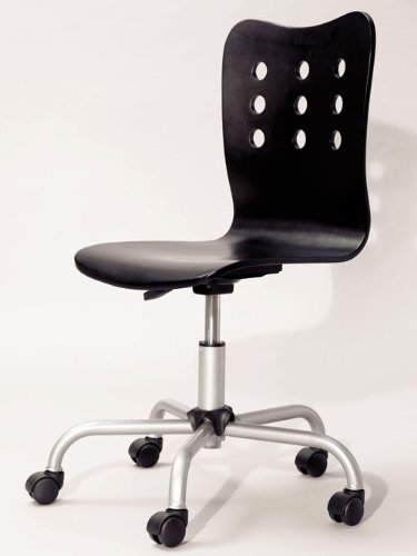 Where ordinary youth bedroom furniture becomes extraordinary sleep, study and storage. An ultra-contemporary look, this uniquely molded marine ply armless swivel chair, with its decorative hole pattern back features a 3-1/2" adjustable height gas cylinder and sturdy 5-prong powder coated silver base, allowing it to survive in any youth or office environment. Some assembly required.