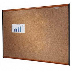 - Prestige graphite-blend, colored cork bulletin surface with light cherry finish frame with graphite sides.